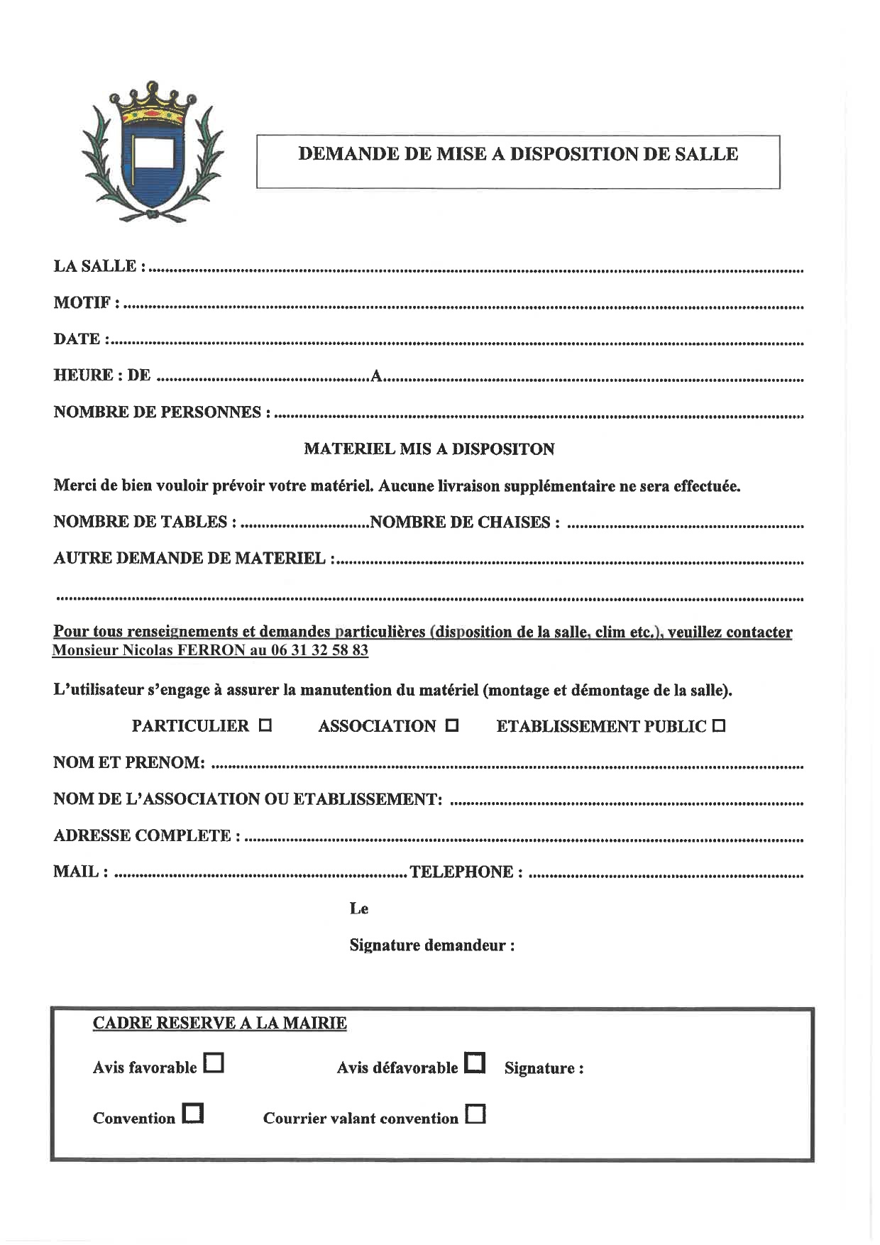 Vous pouvez également remplir la demande papier de mise à disposition de salle :